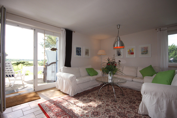 Hier liegt der offene Schlafraum mit Doppelbett, TV und DVD-Player. Sonstiges: ca. 60 qm Wohnfläche, 1 Pkw-Stellplatz auf dem Grundstück, 2 Terrassen mit Terrassenmöbeln, Feuerstelle und Strandkorb im Garten, Kinderbett und Kinderstuhl vorhanden und inklusive, Nichtraucher, 1 Hund nur nach Vereinbarung erlaubt.